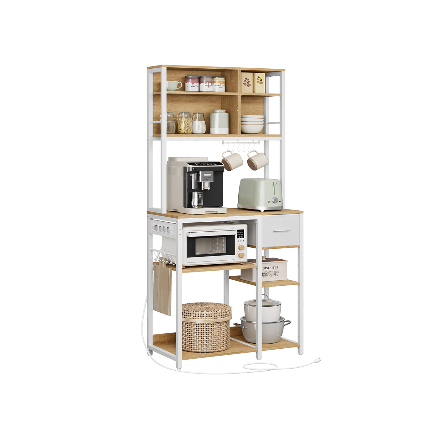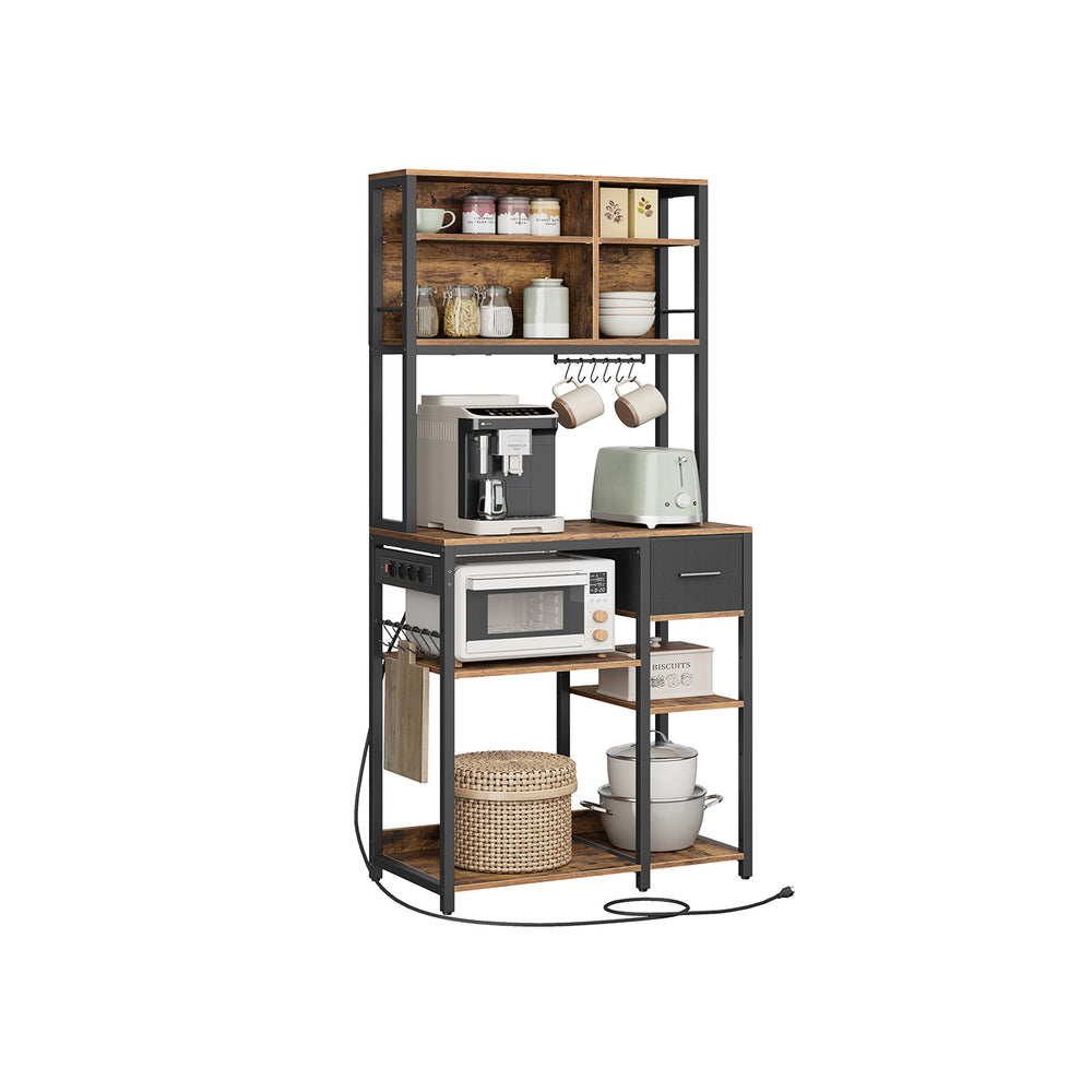 Estantería de Cocina con Multienchufe 40 x 80 x 180,4 cm Marrón Rústico y Negro Tinta
