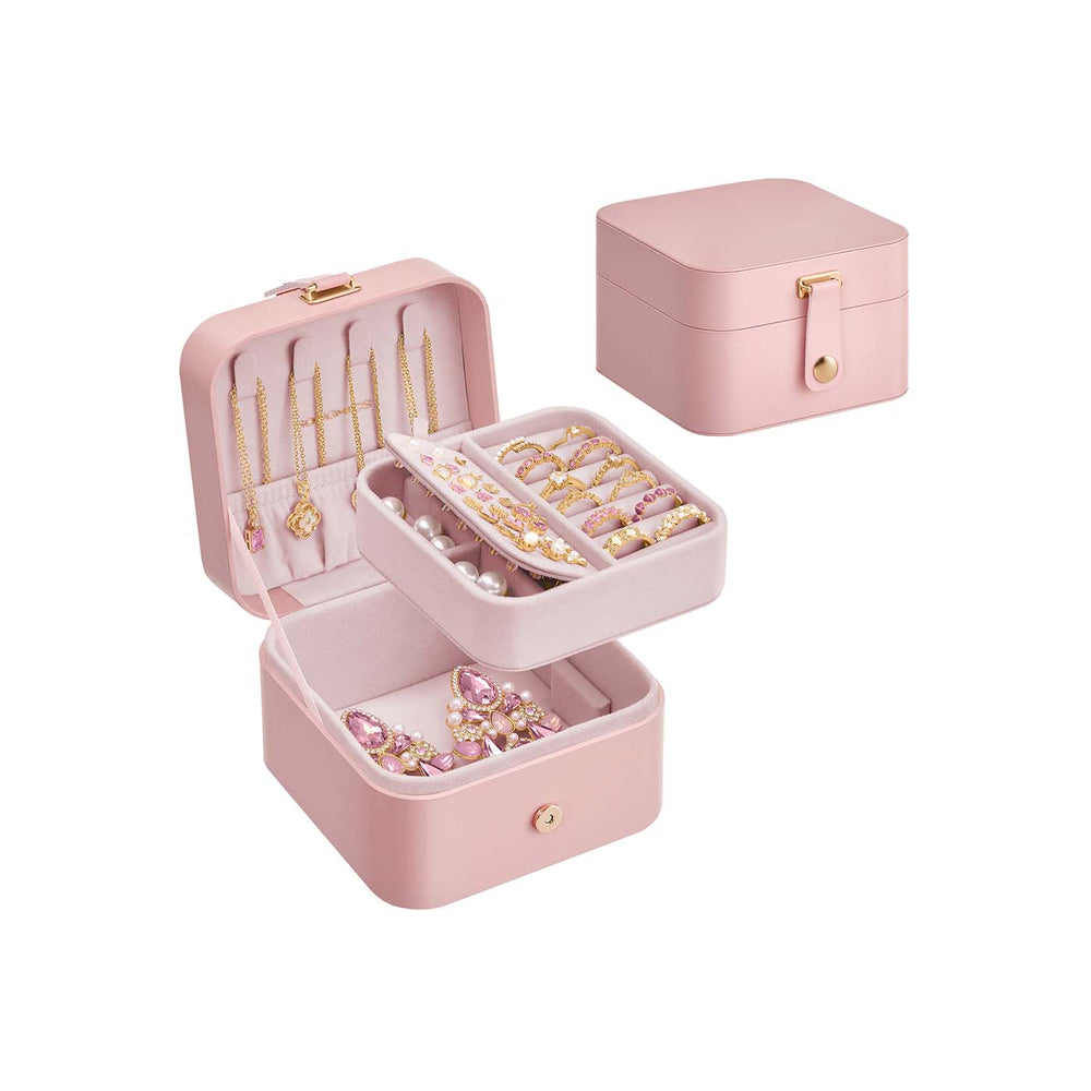 Caja Joyero de Viaje 2 Niveles para Accesorios Grandes Rosa Jalea
