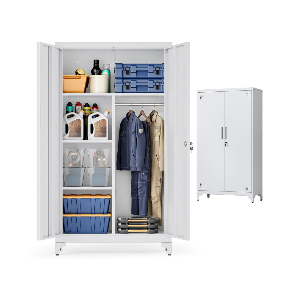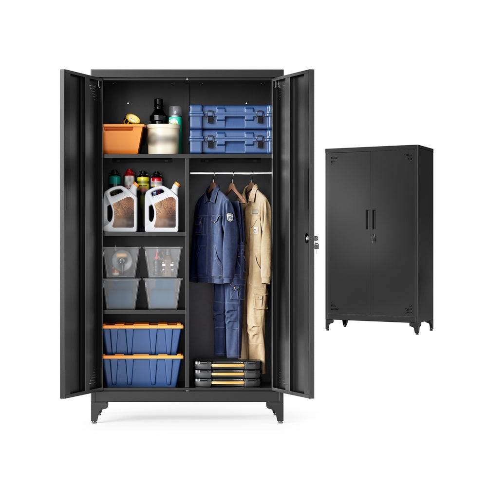Armario metálico 80 x 40 x 165 cm con 2 puertas y 5 Compartimentos Negro Mate