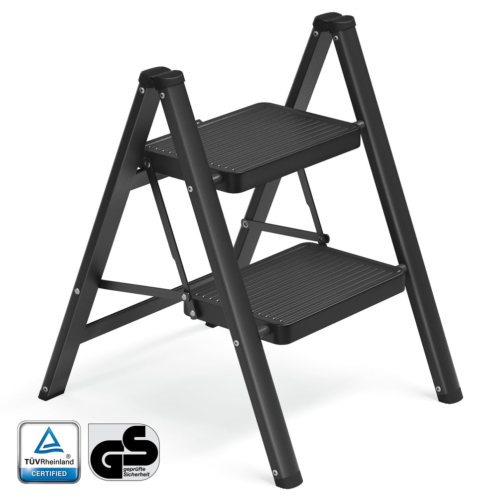 Escalera de 2 Peldaños Plegable de Acero para Casa y Oficina Negro