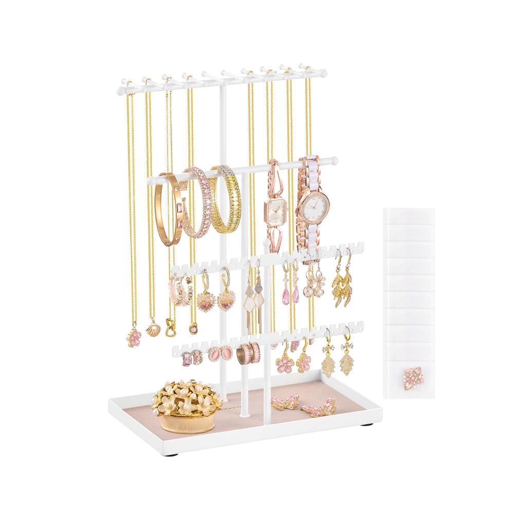 Organizador de joyas con soporte de metal y bandeja de terciopelo