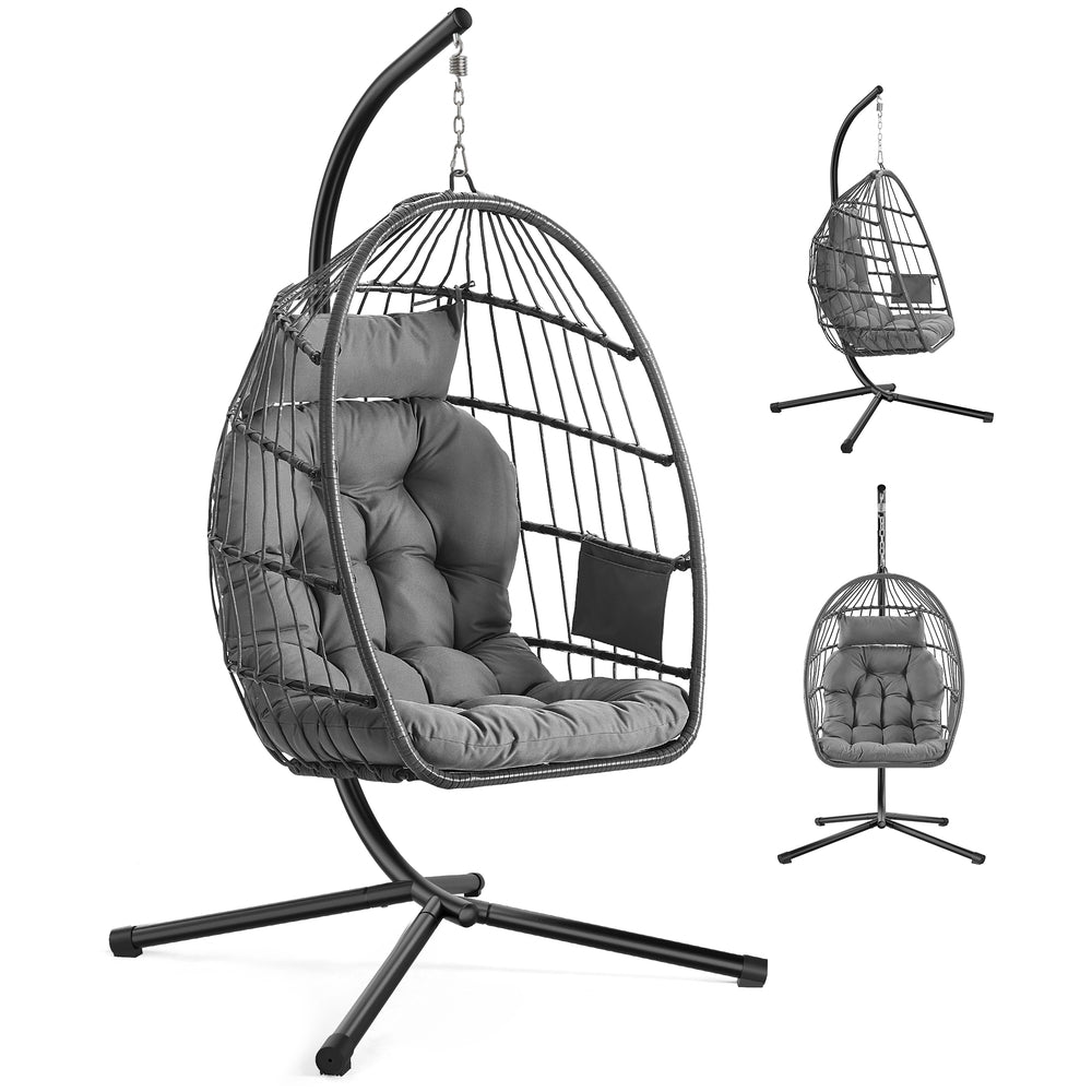 Silla colgante de exterior con asiento acolchado cómodo Gris