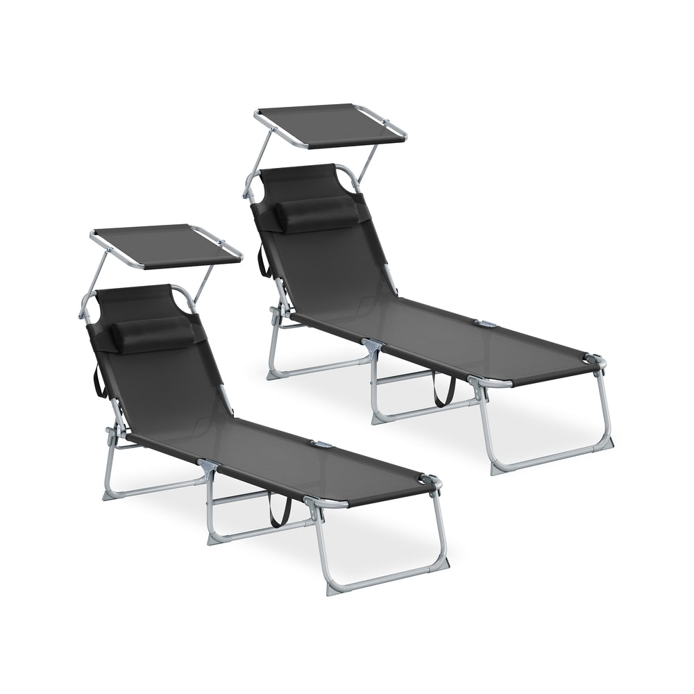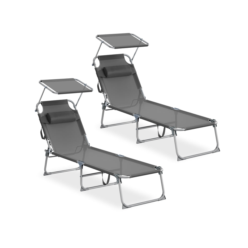 Juego de 2 Tumbonas Plegables con Cojines y Respaldo Ajustable Gris