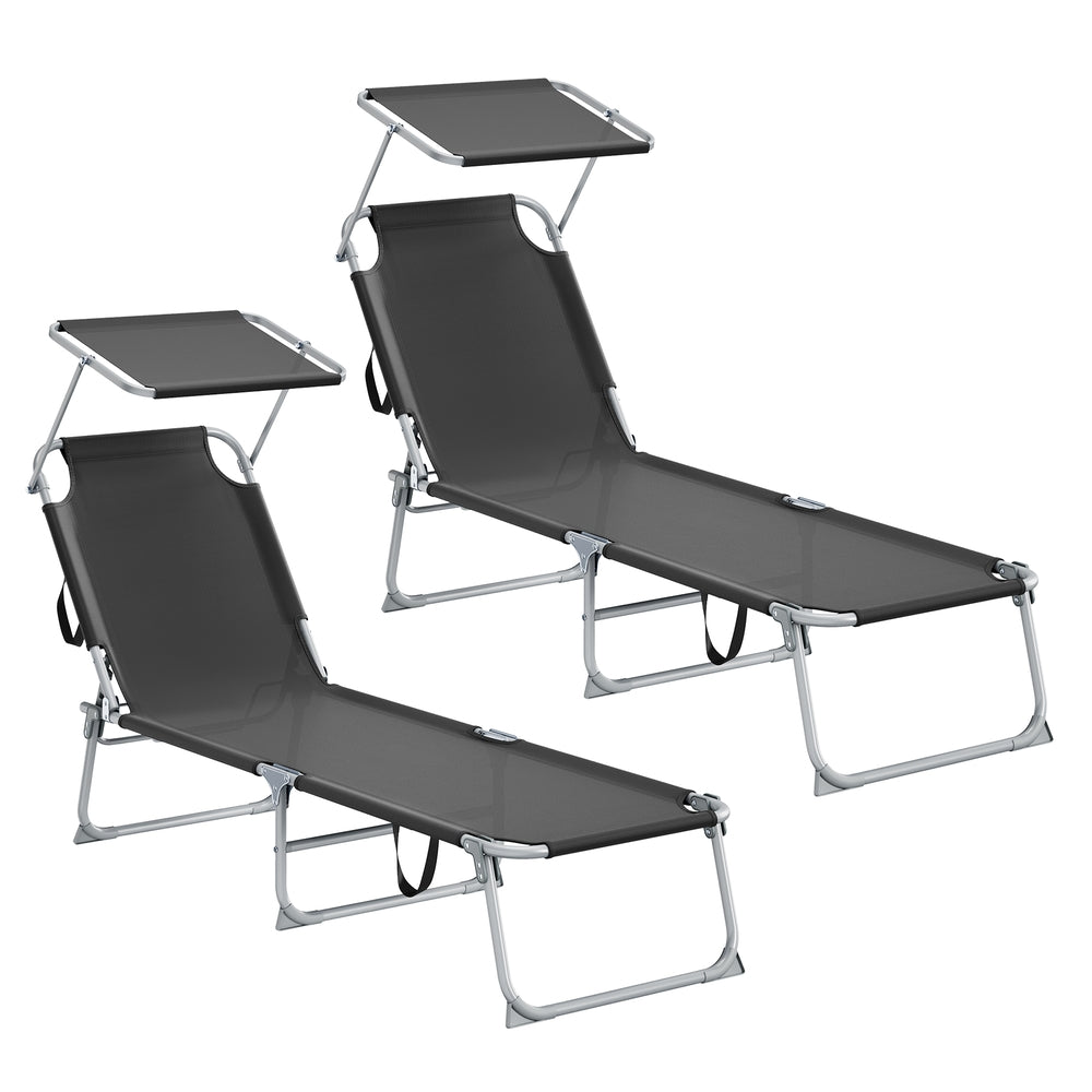 Juego de 2 Tumbonas plegables 189 x 53 x 28,5 cm con parasol y respaldo ajustable Negro