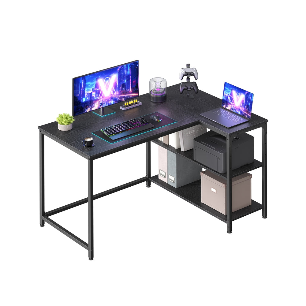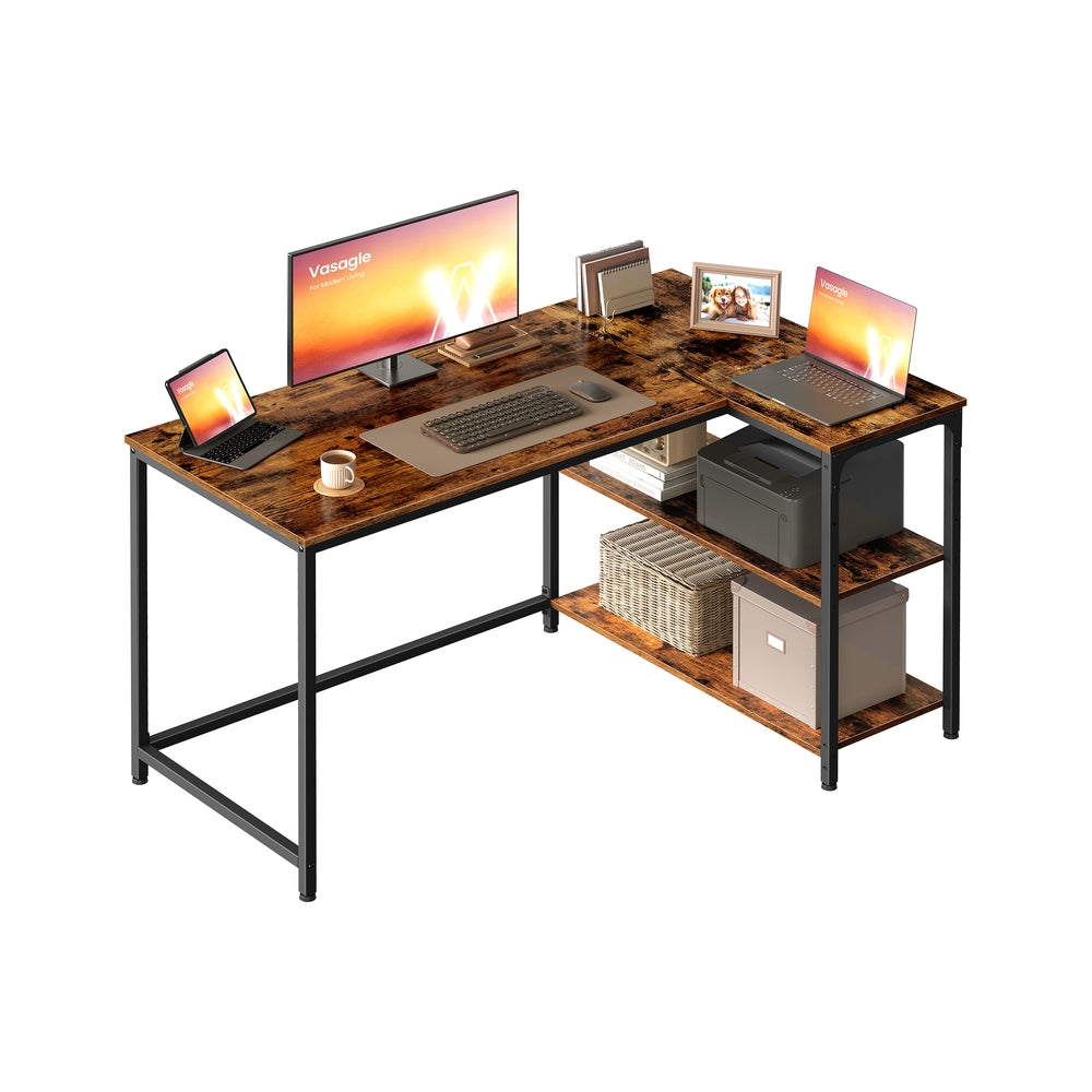 VASAGLE Escritorio en L gaming con estantería y baldas regulables