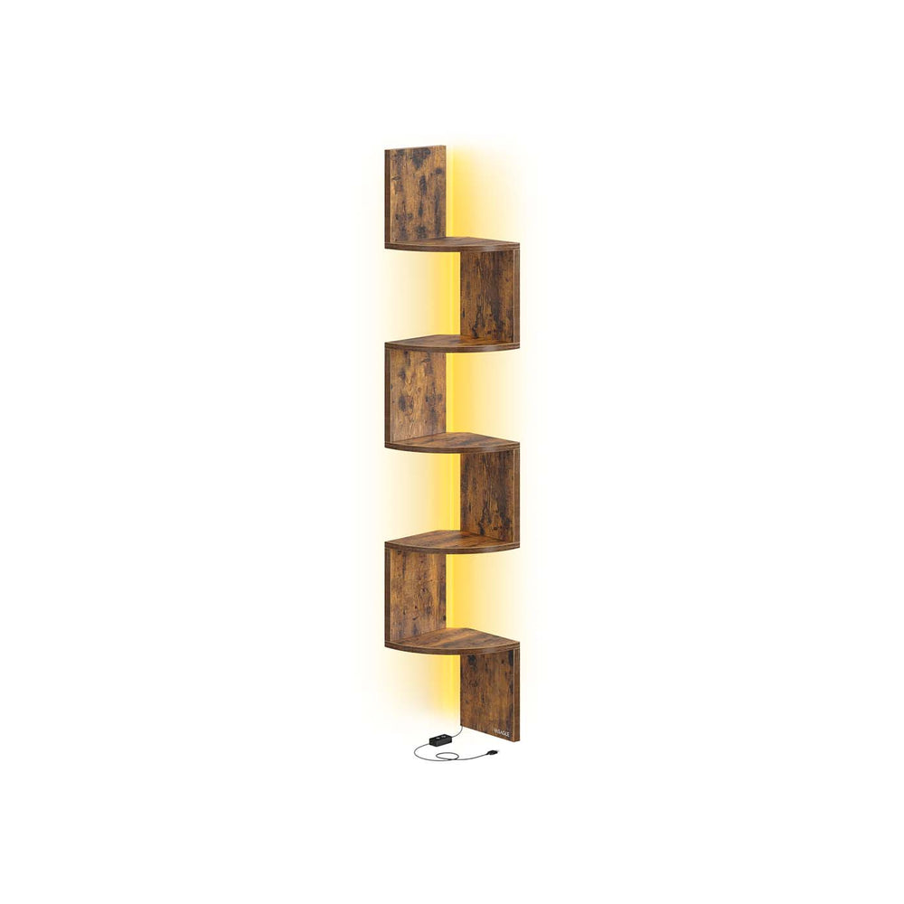 VASAGLE Estantería esquinera de pared con luz LED y varios niveles