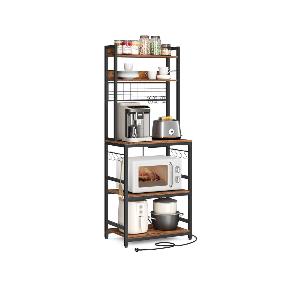 Estantería para Panadería con Toma de Corriente Marrón Rústico y Negro