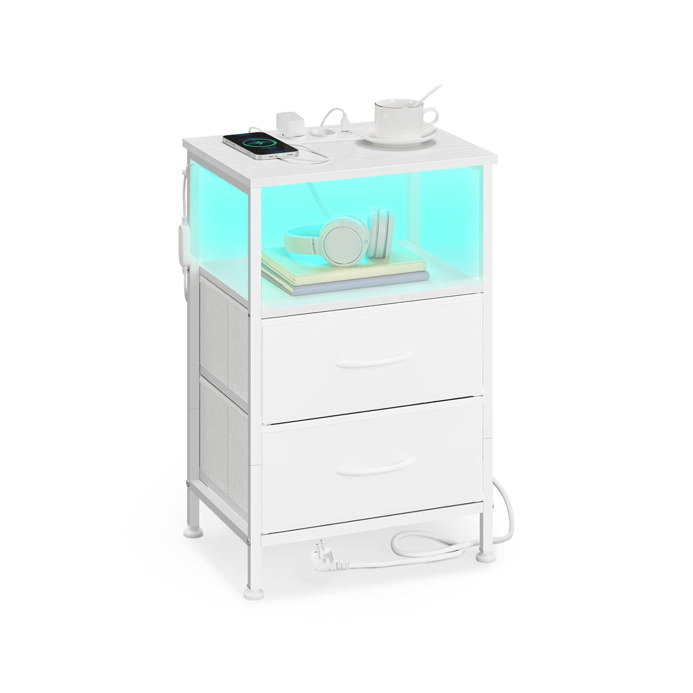 SONGMICS Mesita de noche con carga inalámbrica y luz LED ajustable