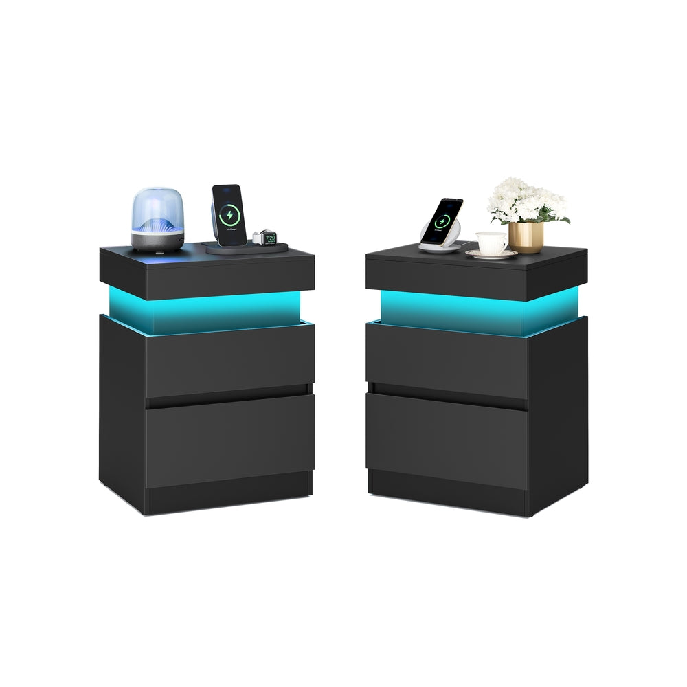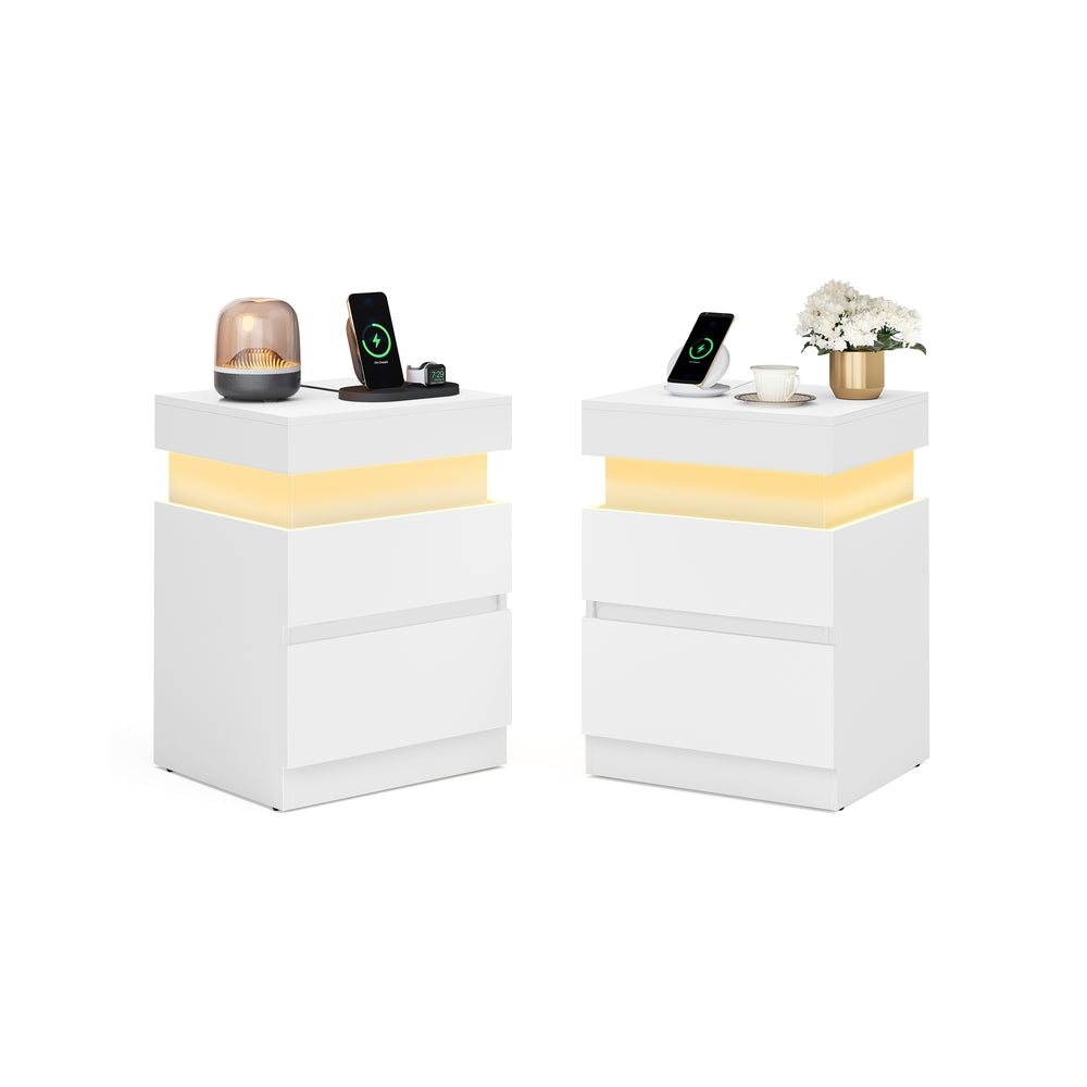 VASAGLE Kailyn Colección - Mesita de noche con enchufes cajones y luz LED