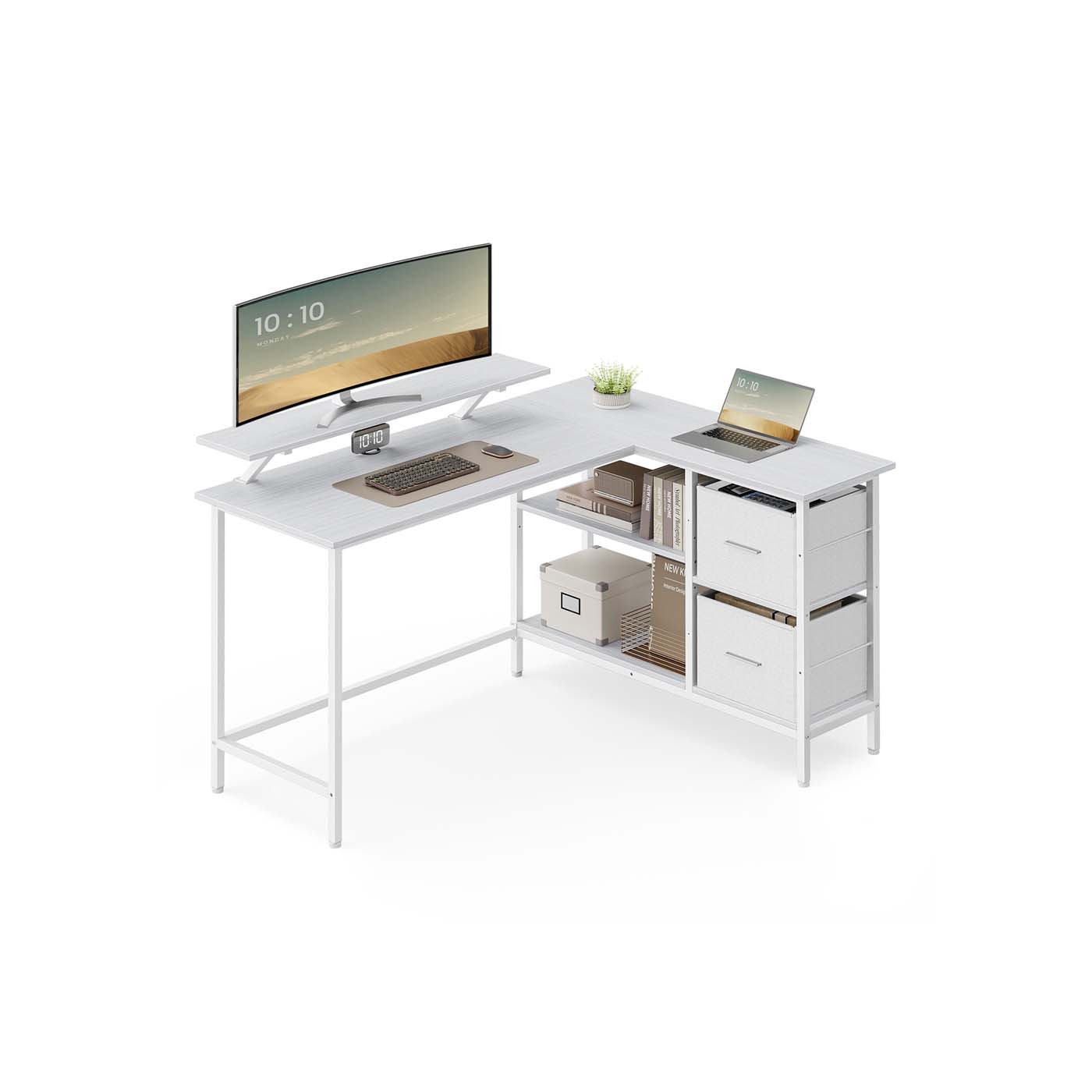 VASAGLE Escritorio en Forma de L con Amplios Cajones con Soporte para Monitor Estante