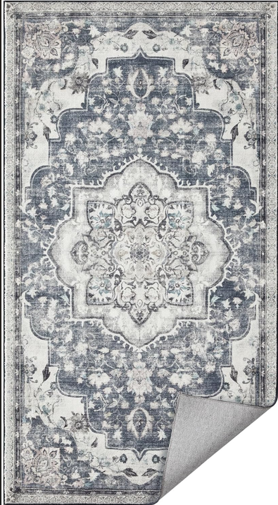 Alfombra Antideslizante 80 x 150 cm para Dormitorio, Estilo Tradicional Vintage, Adorno para Salón, Cocina, Entrada, Comedor, Lavable a Máquina, Gris Paloma