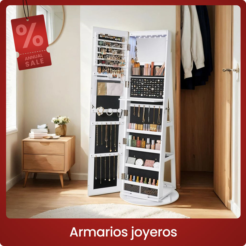 SONGMICS Espejo Joyero con 6 LEDs Armario de Joyas Organizador de Joyería Giratorio