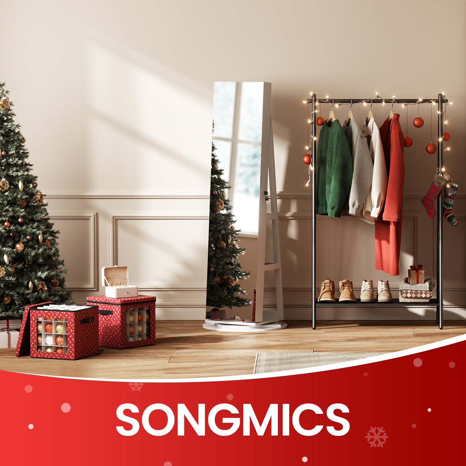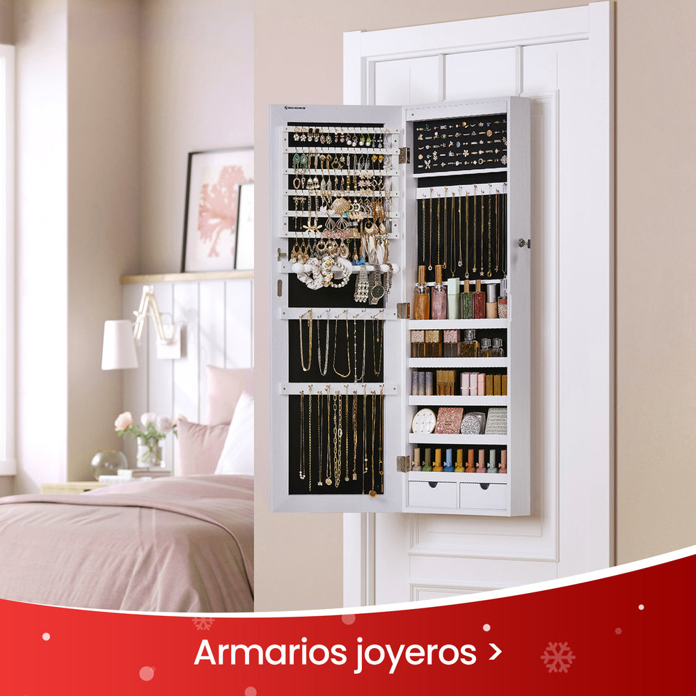 SONGMICS Espejo Joyero Armario para Joyas Armario Joyero con 2 Organizadores de Cosmético