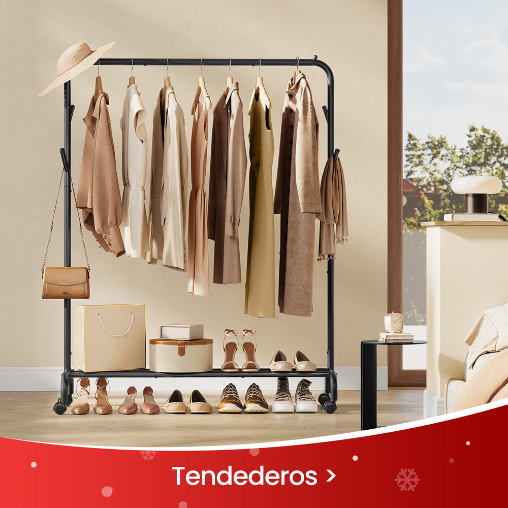 SONGMICS Burro Ropa con Ruedas Perchero Burro Extensible Portátil Plata