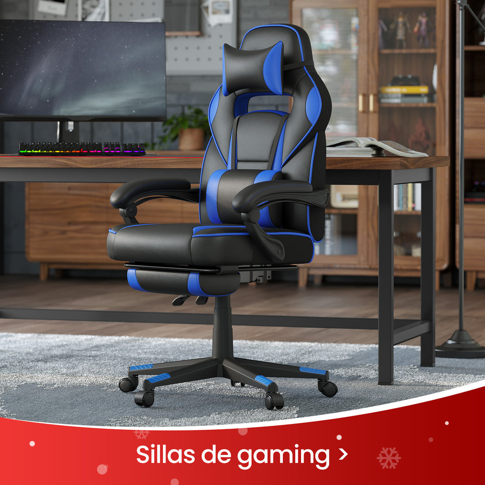 SONGMICS Silla Gaming de Diseño Ergonómico con Reposapiés Gris Pizarra