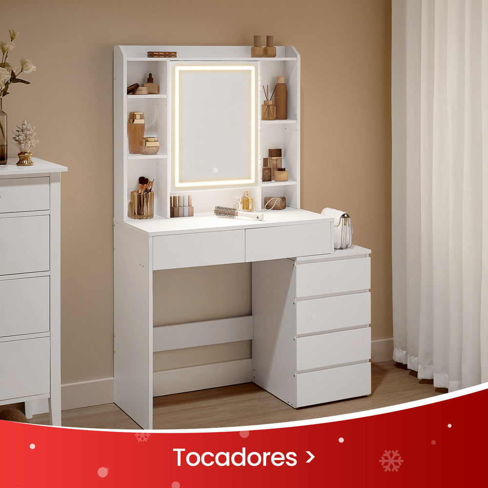 VASAGLE Tocador Luces LED con Brillo Ajustable Mesa de Maquillaje con Espejo Blanco